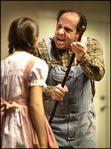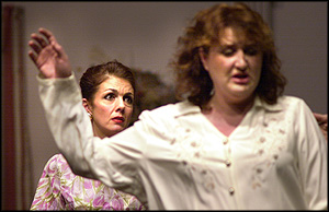 (above) Mrs. Daigle (Bridget Burke Weiss, right) giving Christine Penmark (Liza Harris, left) a piece of her mind. (left)