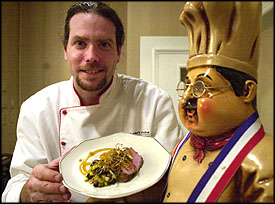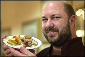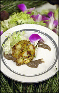 (above left) Scott Walker, chef owner of Heritage Grill, Denville. (left) Scallop & lobster gallantine, served by Pazzo Pazzo, of Morristown.
