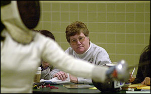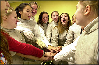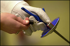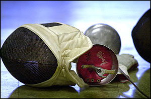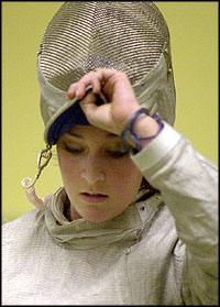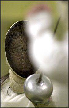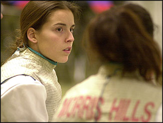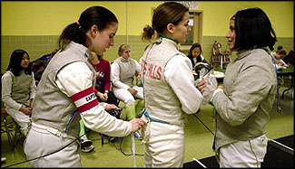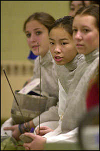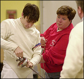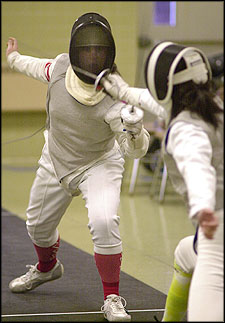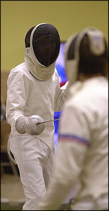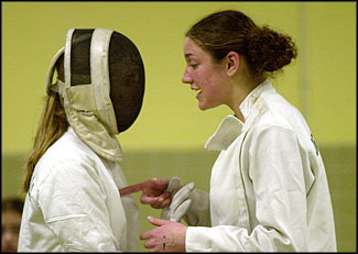 Denville - Morris Knolls High School hosted sister school Morris Hills in fencing, on Thursday January 17, 2002. (above left)
