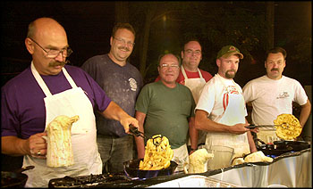 l-r Pete Hopler, Firefighter Dave Robertson; Firefighter Russ Johnson; Firefighter Mark Taylor; Denville Firefighter Dan Hopler; and firefighter Tom Slockbower.