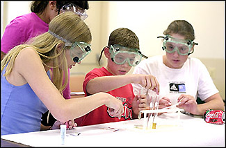Science Instructor Joe Benvenuto, conducts an experiment where the students crush a can with steam.